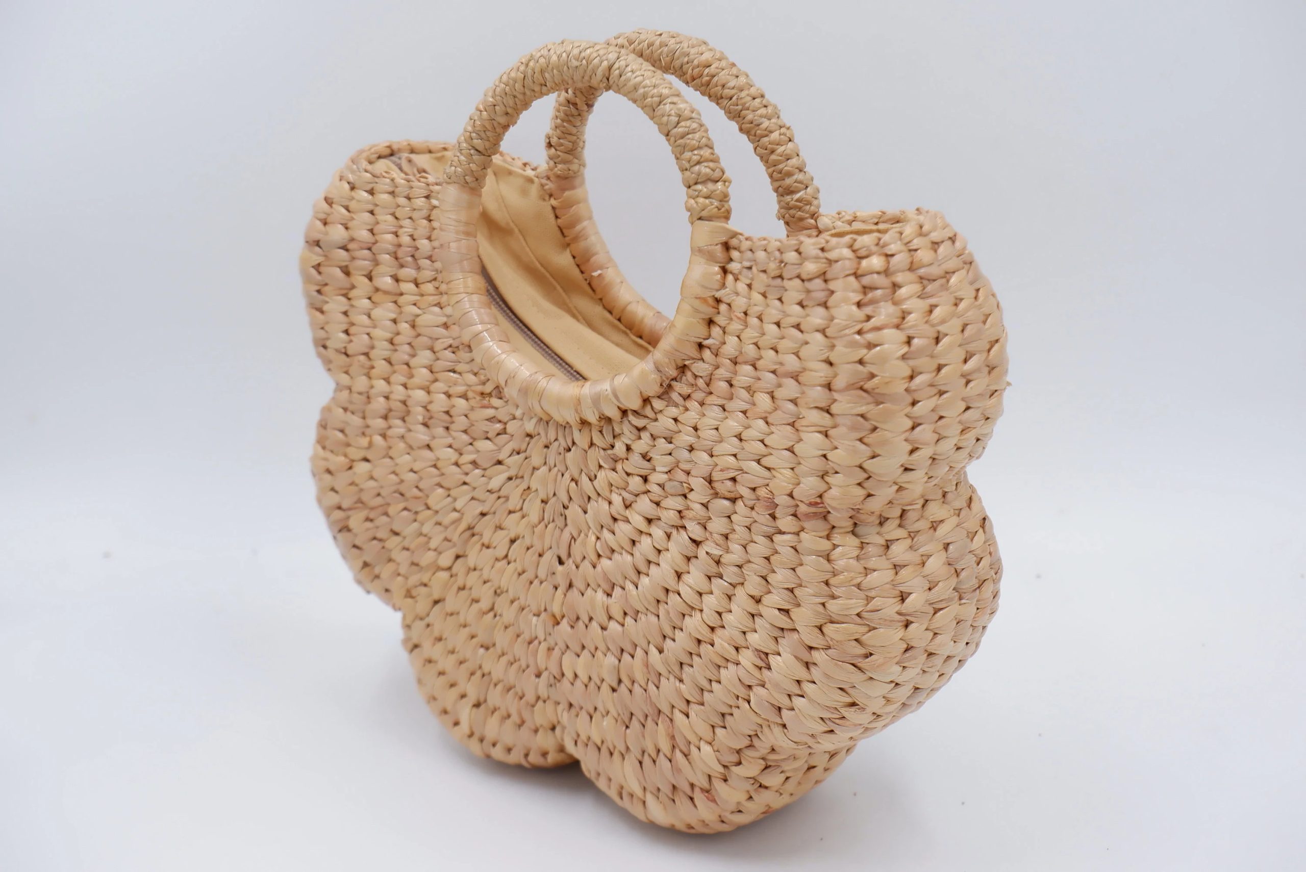 A round woven top handle is integrated into the design, making the bag easy and comfortable to carry by hand while enhancing its charming, slightly retro feel. The interior offers space for your daily essentials—phone, small wallet, keys, lipstick, and sunglasses—perfect for brunch dates, beach walks, picnics, or holiday photos. Pair it with sundresses, denim, or simple neutrals to let the bag become the highlight of your outfit.
