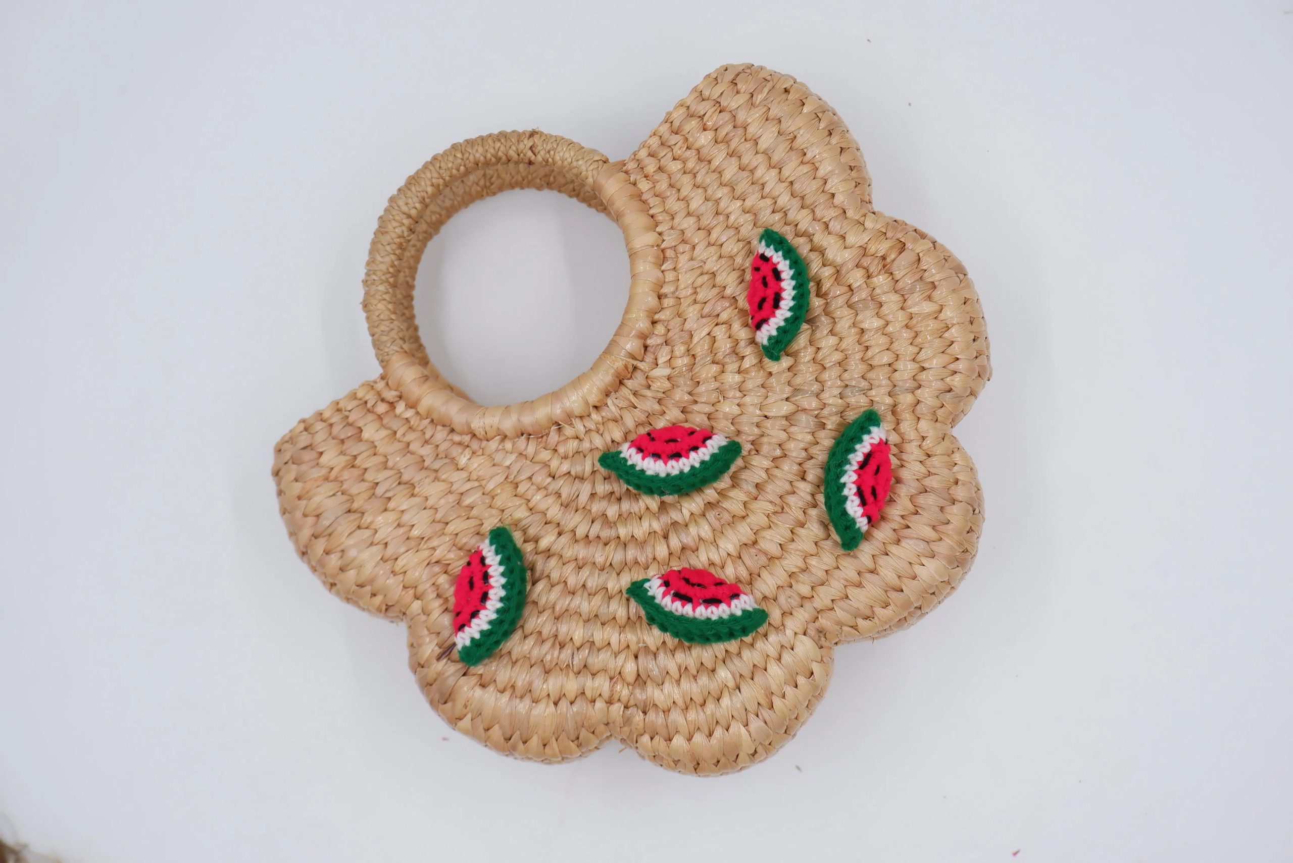 Cute, lightweight, and full of personality, this watermelon scalloped woven bag is an ideal accessory for anyone who loves fun details, natural textures, and sunny, carefree style.